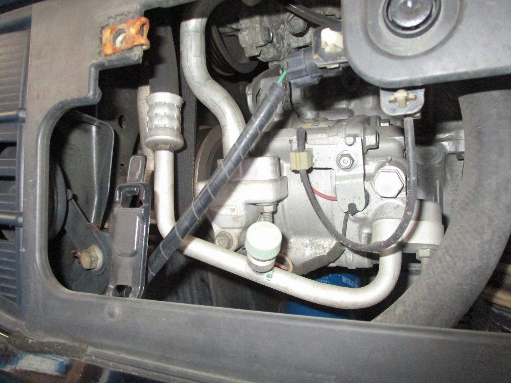 リフトアップしA/Cコンプレッサーを点検