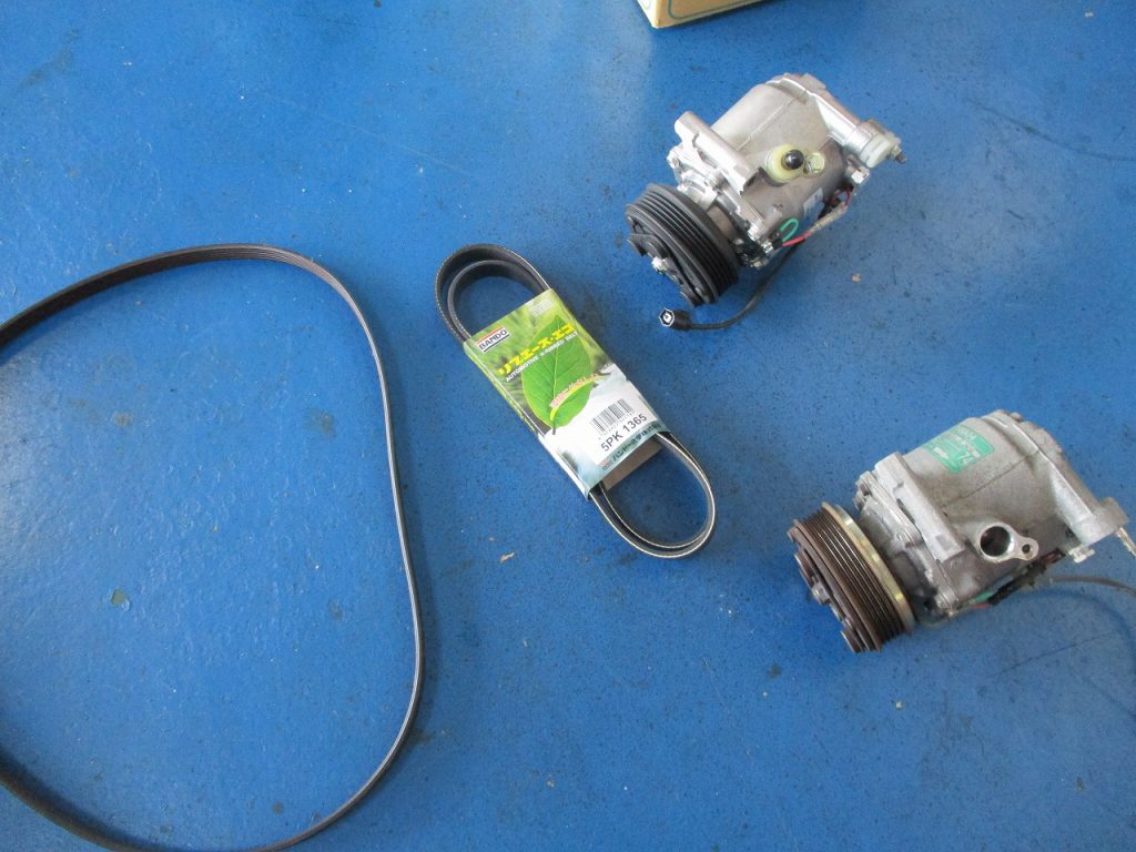 A/Cコンプレッサー・ファンベルト脱着・リビルト交換