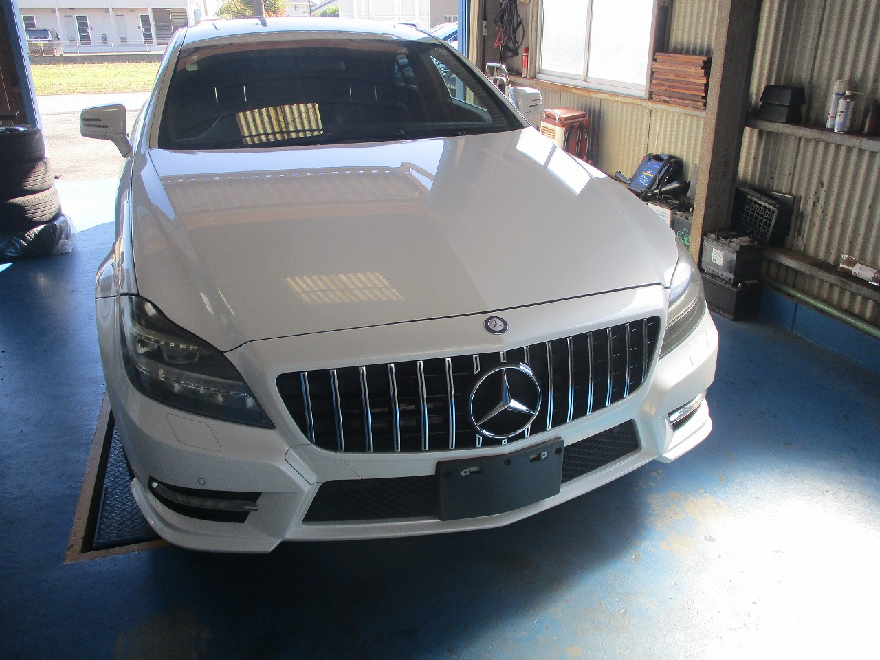 CLS63 後期仕様Fグリル、左ドアミラー格納不良交換・CX-7 A/C異音コンプ脱着修理・MBキャンピング エンジンOIL交換